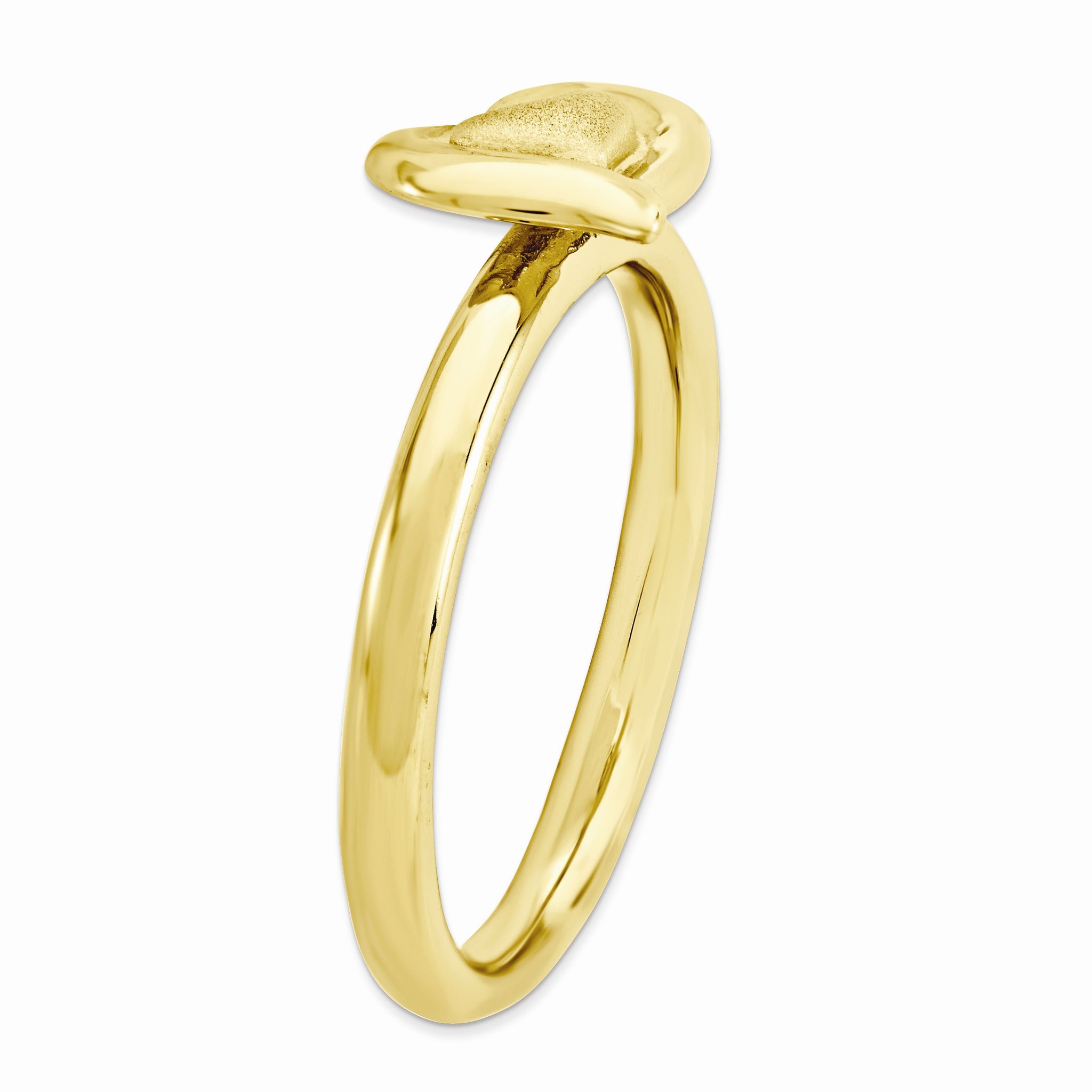 Create a look that is all your own with a fun assortment of rings that looks great alone or stacked in a collection to express your own unique style. This polished yellow gold-tone plated sterling silver ring features a 9mm asymmetrical heart with a satin center and a 2.5mm width band. Guaranteed to fit together perfectly with all of the mix and match Stackable Expressions rings.