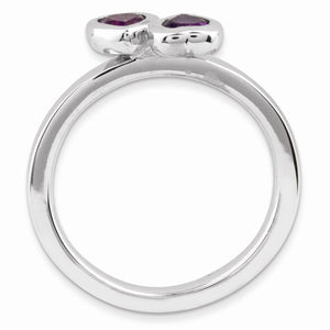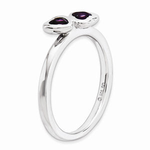 Rhodium Plated Sterling Silver & Amethyst Stackable 2 Stone Heart Ring