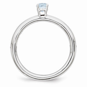 Rhodium Plated Sterling Silver Stackable 4mm Round Aquamarine Ring