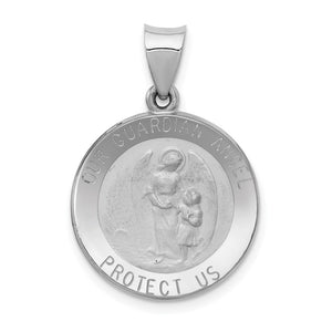 14k White Gold Hollow Guardian Angel Medal Pendant, 19mm (3/4 Inch) - Black Bow Jewelry Company