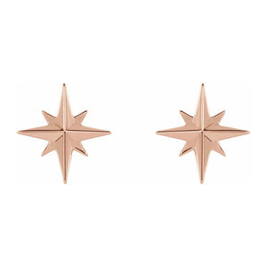 Express your shining personality with these north star earrings fashioned from solid 14k rose gold. They feature a polished sculpted starburst design with a friction back post. The approximate size is 9.5mm (3/8 inch).