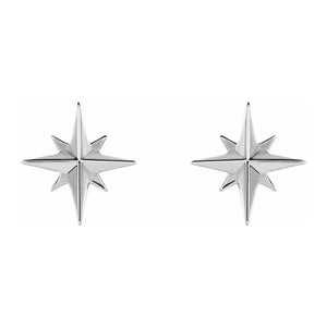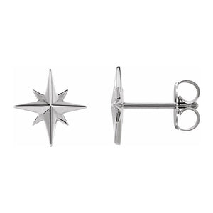 Express your shining personality with these north star earrings fashioned from rhodium-plated 14k white gold. They feature a polished sculpted starburst design with a friction back post. The approximate size is 9.5mm (3/8 inch).