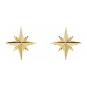 Express your shining personality with these north star earrings fashioned from solid 14k yellow gold. They feature a polished sculpted starburst design with a friction back post. The approximate size is 9.5mm (3/8 inch).
