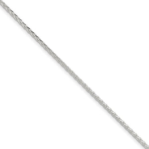 This 18-inch sterling silver spiga chain bracelet closes with a lobster-claw clasp and features a hollow round weave design that has been diamond-cut for added sparkle. The 2.15mm width will add elegance and beauty to your favorite charm or pendant. Made in Italy.