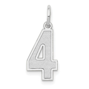 14k White Gold, Jersey Collection, Medium Number 4 Pendant