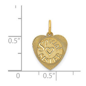 14k Yellow Gold Special Sister Heart Charm or Pendant, 13mm