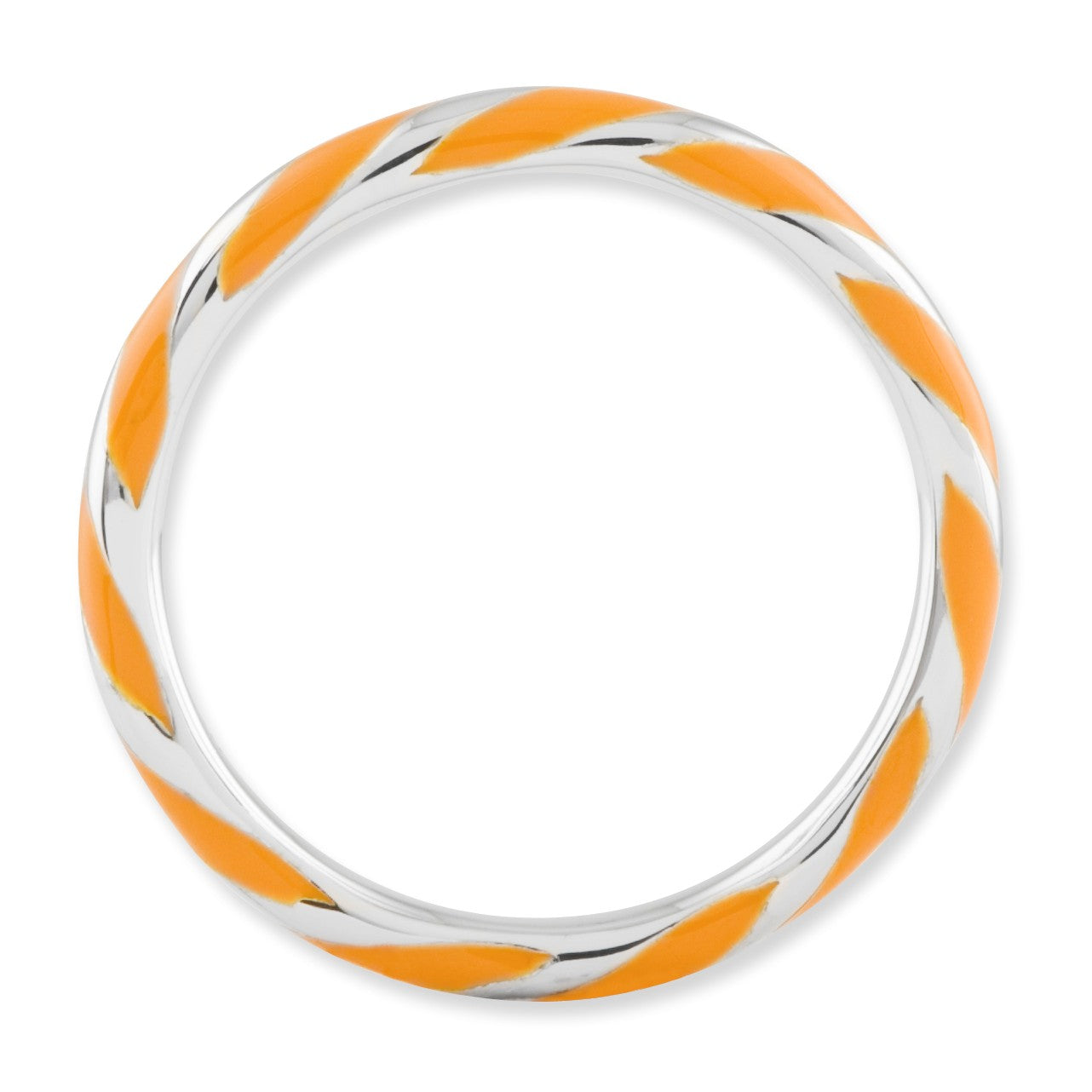Create the perfect stack with enameled bands available in 10 vibrant colors. Featuring a twisted stripe of orange enamel this 2. Mm sterling silver band is finished with tarnish resistant rhodium plating so it will retain its bright white finish. Guaranteed to fit together perfectly with all of the mix and match Stackable Expressions rings.