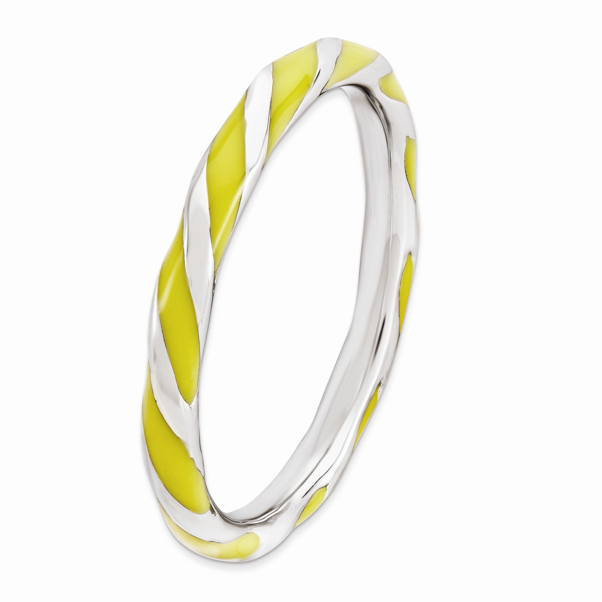 Create the perfect stack with enameled bands available in 10 vibrant colors. Featuring a twisted stripe of yellow enamel this 2. Mm sterling silver band is finished with tarnish resistant rhodium plating so it will retain its bright white finish. Guaranteed to fit together perfectly with all of the mix and match Stackable Expressions rings.