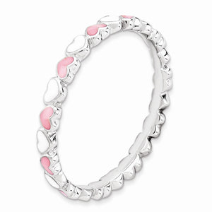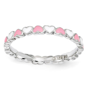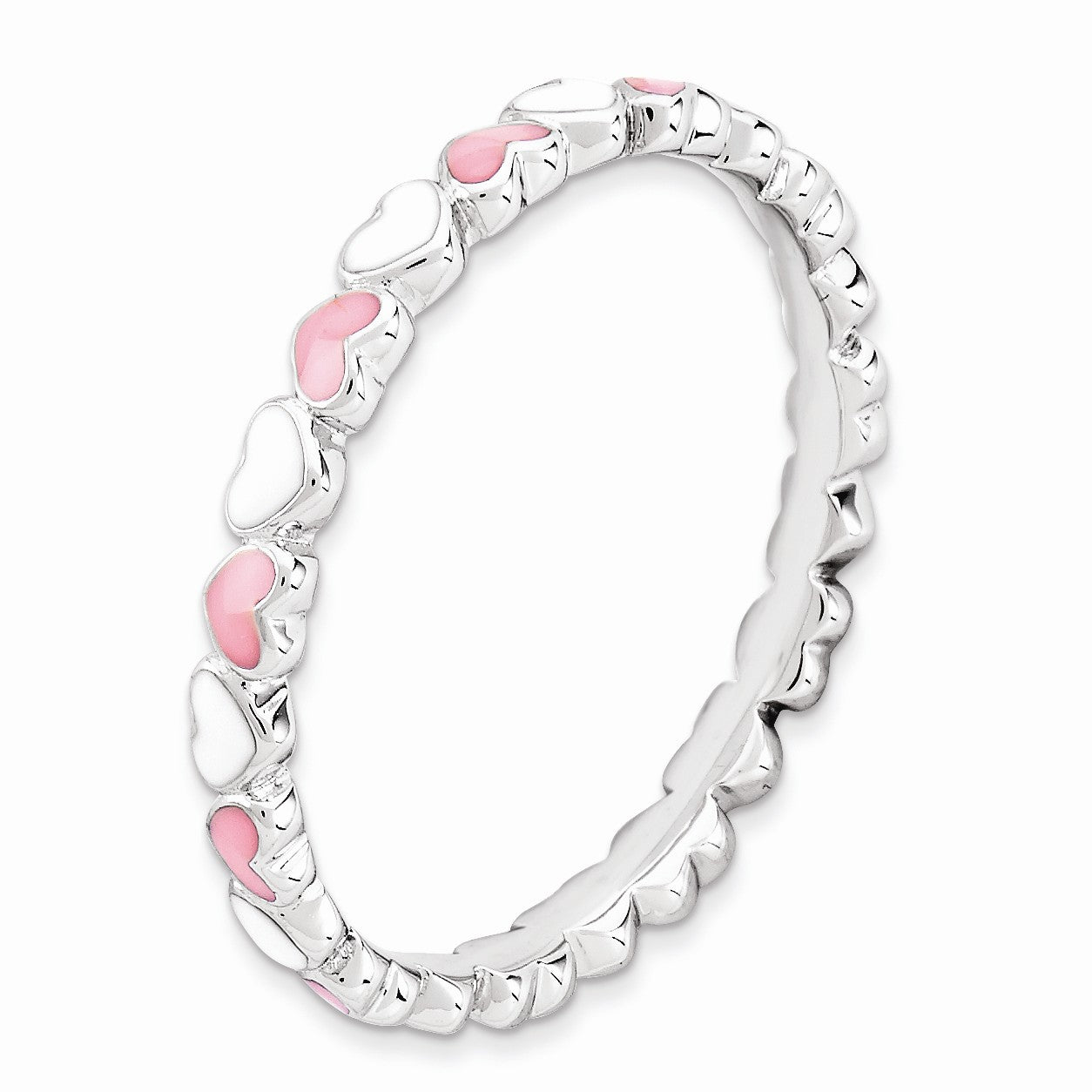 Effortlessly create a meaningful theme or message with colorful enamel bands. Featuring an unending heart shaped design created from pink and white enamel this 2. Mm width sterling silver band is finished with tarnish resistant rhodium plating so it will retain its bright polished luster. Guaranteed to fit together perfectly with all of the mix and match Stackable Expressions rings.