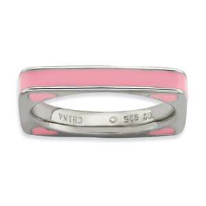 3.25mm Silver and Pink Enamel Stackable Square Band