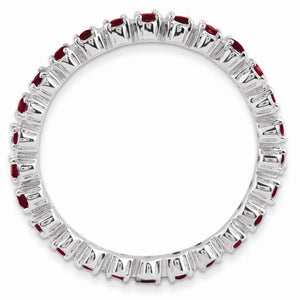 Garnet, January's birthstone symbolizes romance, love and passion; it is also believed to bring inspiration. This 2.5mm wide band fashioned from rhodium plated sterling silver is prong set with round gemstones totaling .8 of a carat. Guaranteed to fit together perfectly with all of the mix and match Stackable Expressions rings.