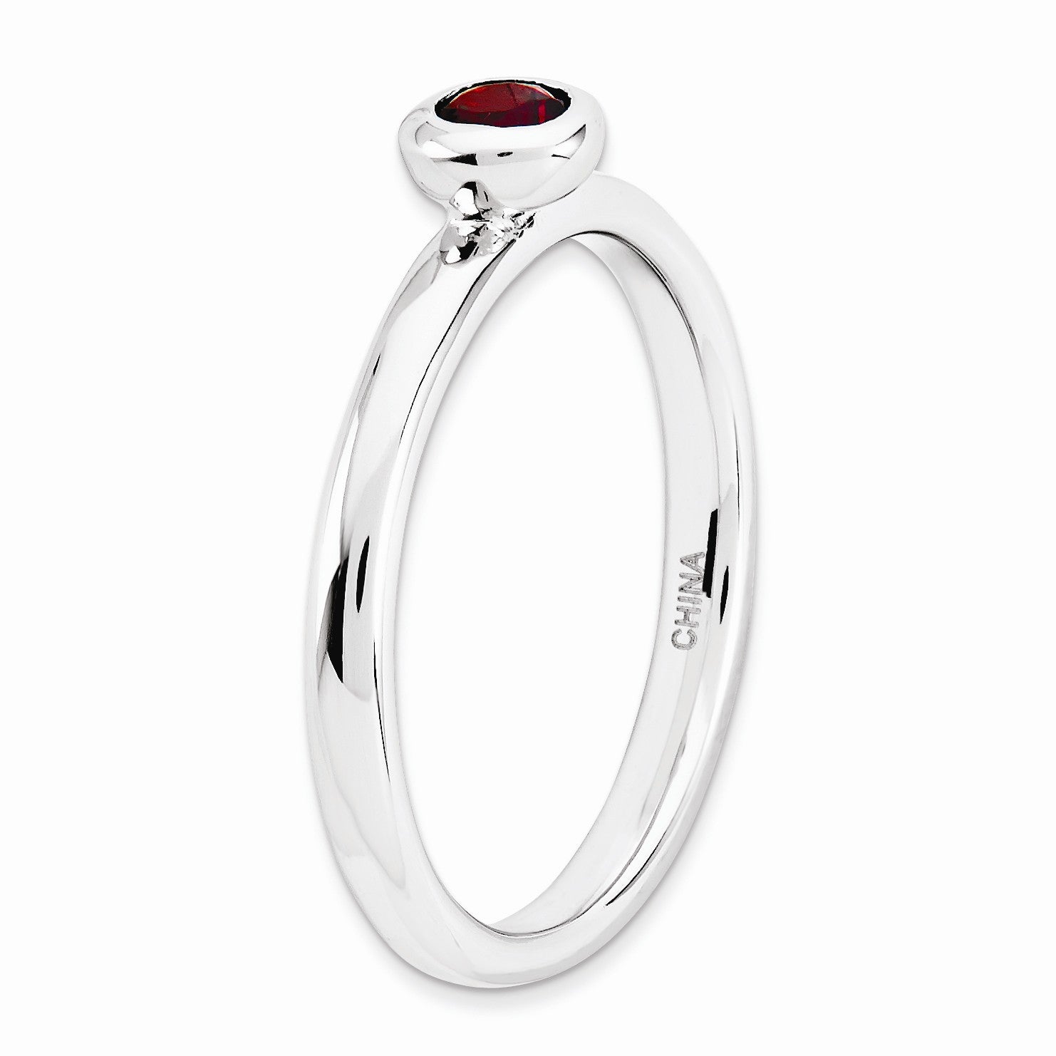 Garnet, January's birthstone symbolizes romance, love and passion; it is also believed to bring inspiration. This 2.5mm band fashioned from rhodium plated sterling silver is bezel set in a low profile mounting with a 4mm gemstone that will add vibrant color to your finger. Guaranteed to fit together perfectly with all of the mix and match Stackable Expressions rings.