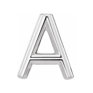Initial attraction in a classic block style with a friction post and back fashioned from rhodium-plated 14k white gold. Each earring is sold individually so that you can personalize your style with any combination. Each initial is approximately 8mm (5/16 inch) in length by 1mm in thickness. The letter A is 7mm in width.