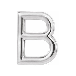 Initial attraction in a classic block style with a friction post and back fashioned from rhodium-plated 14k white gold. Each earring is sold individually so that you can personalize your style with any combination. Each initial is approximately 8mm (5/16 inch) in length by 1mm in thickness. The letter B is 6mm in width. This is a made to order item and is estimated to ship 11/24/2025