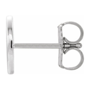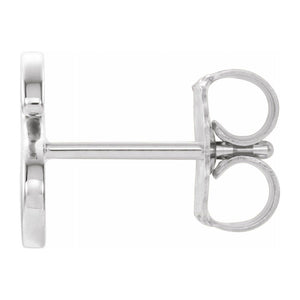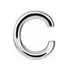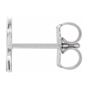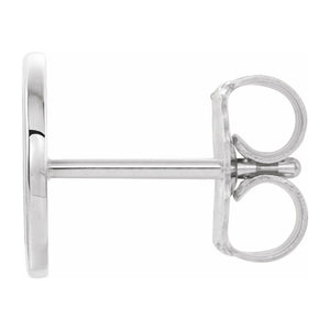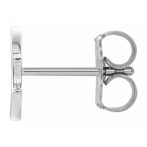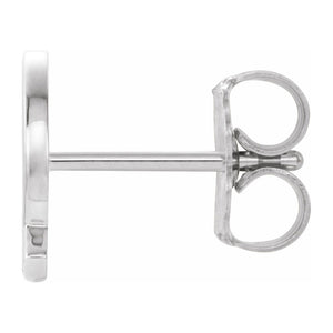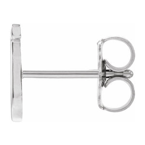 Initial attraction in a classic block style with a friction post and back fashioned from rhodium-plated 14k white gold. Each earring is sold individually so that you can personalize your style with any combination. Each initial is approximately 8mm (5/16 inch) in length by 1mm in thickness. The letter C is 7mm in width.