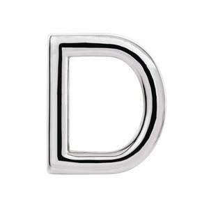 Initial attraction in a classic block style with a friction post and back fashioned from rhodium-plated 14k white gold. Each earring is sold individually so that you can personalize your style with any combination. Each initial is approximately 8mm (5/16 inch) in length by 1mm in thickness. The letter D is 7mm in width. This is a made to order item and is estimated to ship 11/24/2025