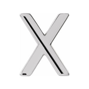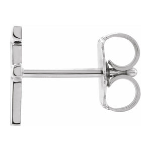 Initial attraction in a classic block style with a friction post and back fashioned from rhodium-plated 14k white gold. Each earring is sold individually so that you can personalize your style with any combination. Each initial is approximately 8mm (5/16 inch) in length by 1mm in thickness. The letter X is 6.25mm in width. This is a made to order item and is estimated to ship 11/24/2025