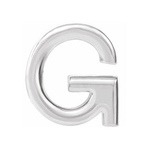 Initial attraction in a classic block style with a friction post and back fashioned from rhodium-plated 14k white gold. Each earring is sold individually so that you can personalize your style with any combination. Each initial is approximately 8mm (5/16 inch) in length by 1mm in thickness. The letter G is 7.5mm in width. This is a made to order item and is estimated to ship 11/24/2025