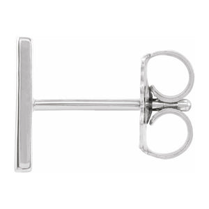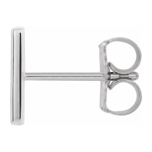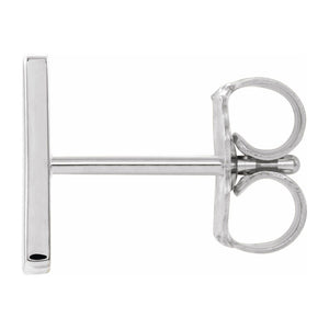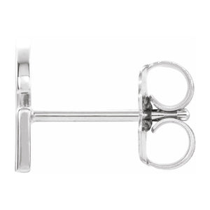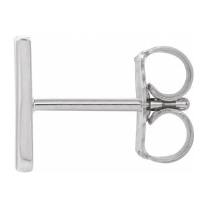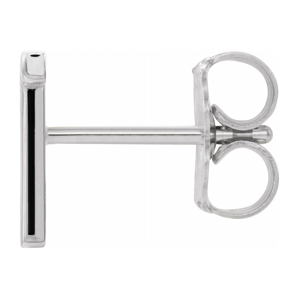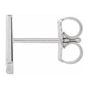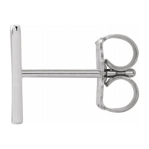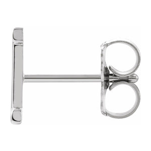 Initial attraction in a classic block style with a friction post and back fashioned from rhodium-plated 14k white gold. Each earring is sold individually so that you can personalize your style with any combination. Each initial is approximately 8mm (5/16 inch) in length by 1mm in thickness. The letter T is 6.75mm in width.