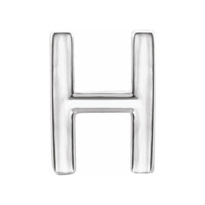 Initial attraction in a classic block style with a friction post and back fashioned from rhodium-plated 14k white gold. Each earring is sold individually so that you can personalize your style with any combination. Each initial is approximately 8mm (5/16 inch) in length by 1mm in thickness. The letter H is 6mm in width. This is a made to order item and is estimated to ship 11/24/2025
