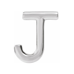 Initial attraction in a classic block style with a friction post and back fashioned from rhodium-plated 14k white gold. Each earring is sold individually so that you can personalize your style with any combination. Each initial is approximately 8mm (5/16 inch) in length by 1mm in thickness. The letter J is 7mm in width. This is a made to order item and is estimated to ship 11/24/2025