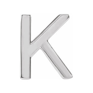 Initial attraction in a classic block style with a friction post and back fashioned from rhodium-plated 14k white gold. Each earring is sold individually so that you can personalize your style with any combination. Each initial is approximately 8mm (5/16 inch) in length by 1mm in thickness. The letter K is 6.25mm in width.