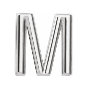 Initial attraction in a classic block style with a friction post and back fashioned from rhodium-plated 14k white gold. Each earring is sold individually so that you can personalize your style with any combination. Each initial is approximately 8mm (5/16 inch) in length by 1mm in thickness. The letter M is 7.25mm in width. This is a made to order item and is estimated to ship 11/24/2025