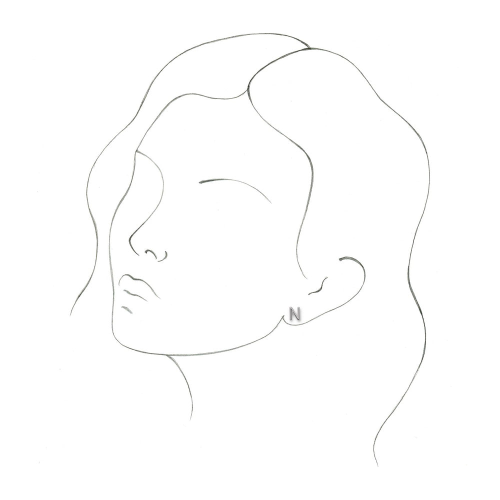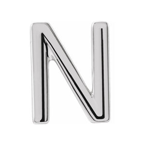 Initial attraction in a classic block style with a friction post and back fashioned from rhodium-plated 14k white gold. Each earring is sold individually so that you can personalize your style with any combination. Each initial is approximately 8mm (5/16 inch) in length by 1mm in thickness. The letter N is 6mm in width. This is a made to order item and is estimated to ship 11/24/2025