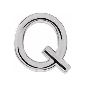 Initial attraction in a classic block style with a friction post and back fashioned from rhodium-plated 14k white gold. Each earring is sold individually so that you can personalize your style with any combination. Each initial is approximately 8mm (5/16 inch) in length by 1mm in thickness. The letter Q is 8mm in width. This is a made to order item and is estimated to ship 11/24/2025