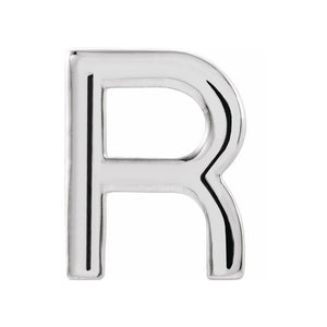 Initial attraction in a classic block style with a friction post and back fashioned from rhodium-plated 14k white gold. Each earring is sold individually so that you can personalize your style with any combination. Each initial is approximately 8mm (5/16 inch) in length by 1mm in thickness. The letter R is 6.25mm in width.