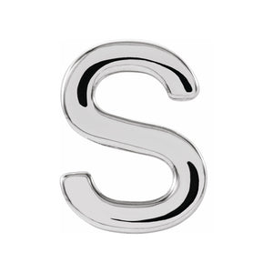 Initial attraction in a classic block style with a friction post and back fashioned from rhodium-plated 14k white gold. Each earring is sold individually so that you can personalize your style with any combination. Each initial is approximately 8mm (5/16 inch) in length by 1mm in thickness. The letter S is 6mm in width. This is a made to order item and is estimated to ship 11/24/2025