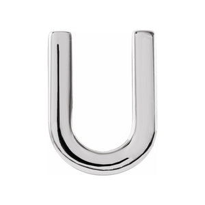 Initial attraction in a classic block style with a friction post and back fashioned from rhodium-plated 14k white gold. Each earring is sold individually so that you can personalize your style with any combination. Each initial is approximately 8mm (5/16 inch) in length by 1mm in thickness. The letter U is 6mm in width. This is a made to order item and is estimated to ship 11/24/2025