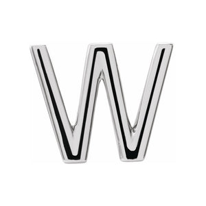 Initial attraction in a classic block style with a friction post and back fashioned from rhodium-plated 14k white gold. Each earring is sold individually so that you can personalize your style with any combination. Each initial is approximately 8mm (5/16 inch) in length by 1mm in thickness. The letter W is 9.5mm in width. This is a made to order item and is estimated to ship 11/24/2025