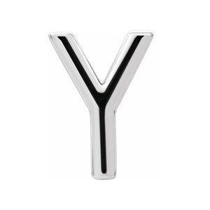 Initial attraction in a classic block style with a friction post and back fashioned from rhodium-plated 14k white gold. Each earring is sold individually so that you can personalize your style with any combination. Each initial is approximately 8mm (5/16 inch) in length by 1mm in thickness. The letter Y is 5.75mm in width. This is a made to order item and is estimated to ship 11/24/2025