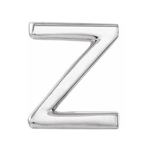 Initial attraction in a classic block style with a friction post and back fashioned from rhodium-plated 14k white gold. Each earring is sold individually so that you can personalize your style with any combination. Each initial is approximately 8mm (5/16 inch) in length by 1mm in thickness. The letter Z is 6.75mm in width. This is a made to order item and is estimated to ship 11/24/2025