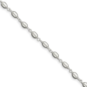 Sterling Silver High Polished Oval Bead Anklet, 10 Inch