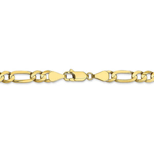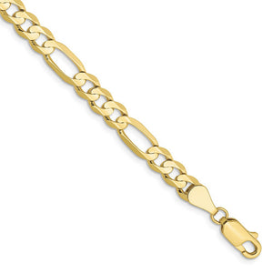 Known for its reoccurring three and one pattern, this stylish figaro chain with its solid link construction of 10k yellow gold features a bright, polished finish that adds lustrous appeal. It measures 5.5mm wide and fastens with a secure lobster-claw clasp. 7 inches in length.