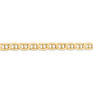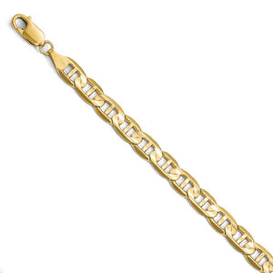 A nautical style design crafted to resemble the cable used to anchor ships, also known as the mariner chain, creates a simple innovative styled bracelet. This 7mm width, 9-inch long 14k yellow gold chain features a solid link construction, a polished finish and a lobster-claw clasp that provides a secure, worry-free fit.