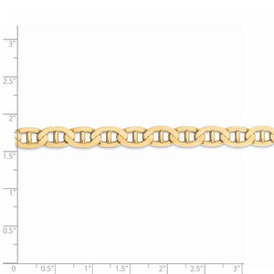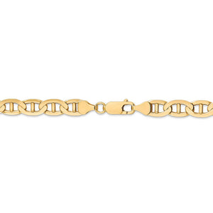 A nautical style design crafted to resemble the cable used to anchor ships, also known as the mariner chain, creates a simple innovative styled bracelet. This 7mm width, 8-inch long 14k yellow gold chain features a solid link construction, a polished finish and a lobster-claw clasp that provides a secure, worry-free fit.