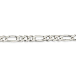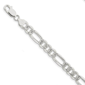 Displaying a modern design with a pave texture and flat profile that provides added dimension and style, this solid link sterling silver Figaro chain will give any outfit a glamorous touch. Measures approximately 8mm in width, 9-inches in length and closes with a lobster claw clasp. Made in Italy.