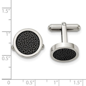 Stainless Steel & Black Stoving Varnish Round Flat Cuff Links, 16mm