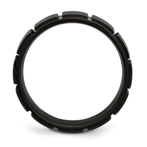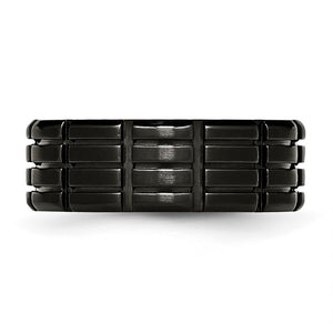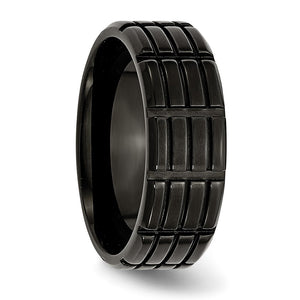 Men's 8mm Black Plated Stainless Steel Grooved Standard Fit Band
