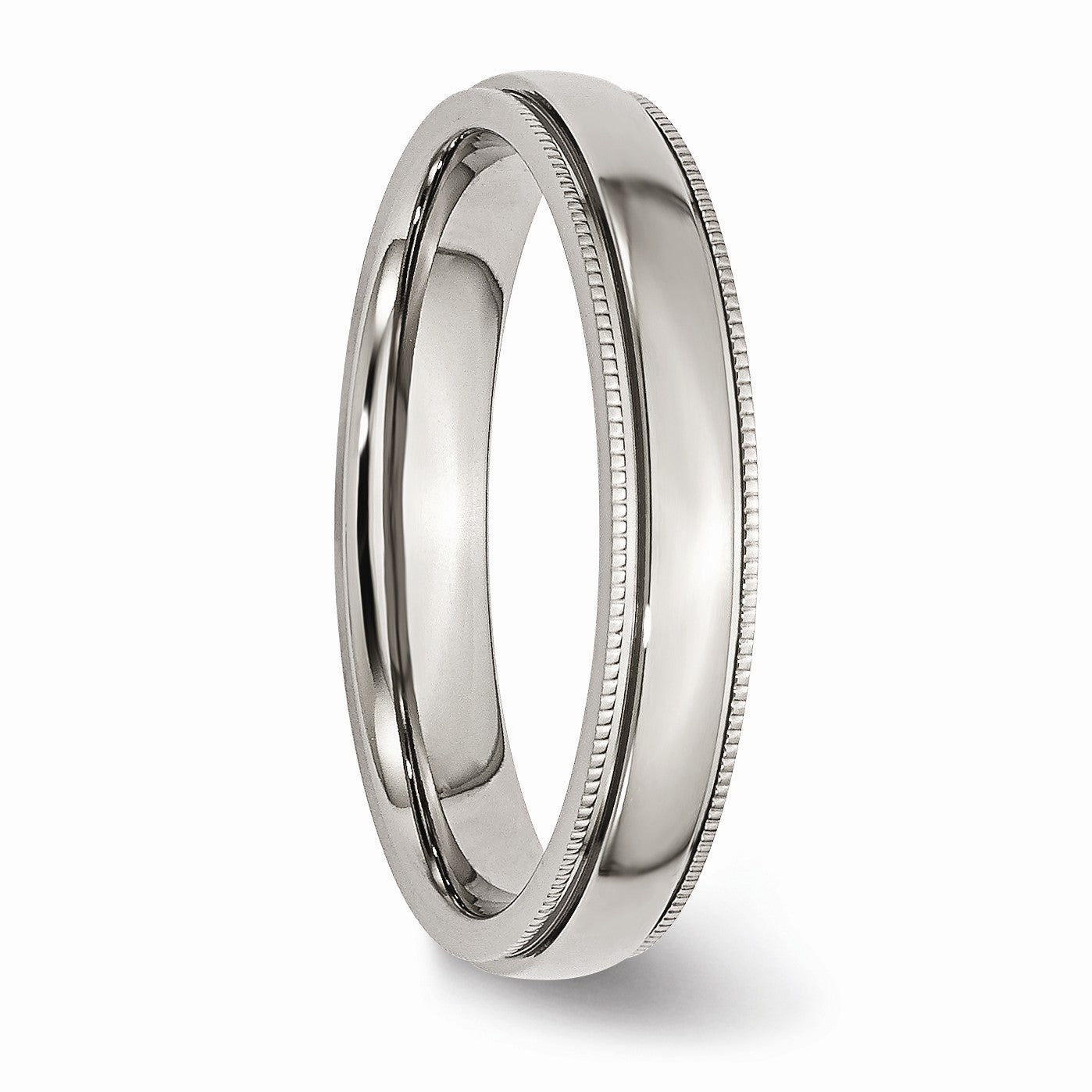 This comfort fit band crafted with 316L stainless steel features a domed design detailed with grooved and beaded edges. It measures 4mm in width and is suitable for engraving.