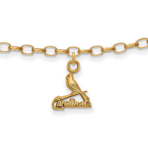 MLB 14K Yellow Gold Plated Sterling Silver Cardinals Anklet, 9 In - Black Bow Jewelry Company