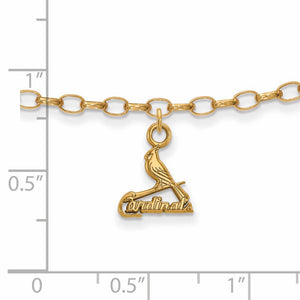 MLB 14K Yellow Gold Plated Sterling Silver Cardinals Anklet, 9 In