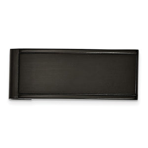 This men's money clip is crafted with stainless steel and features a black plated steel finish. The steel surface has a brushed and polished finish and is engravable.