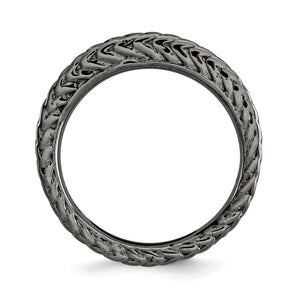 Make it simple and stylish with bands of different textures, finishes, widths and colors! This black ruthenium-plated sterling silver band features a wheat patterned dome design with a high polished finish that measures 2. Mm wide. Domed bands are designed to be stacked next to other bands only.