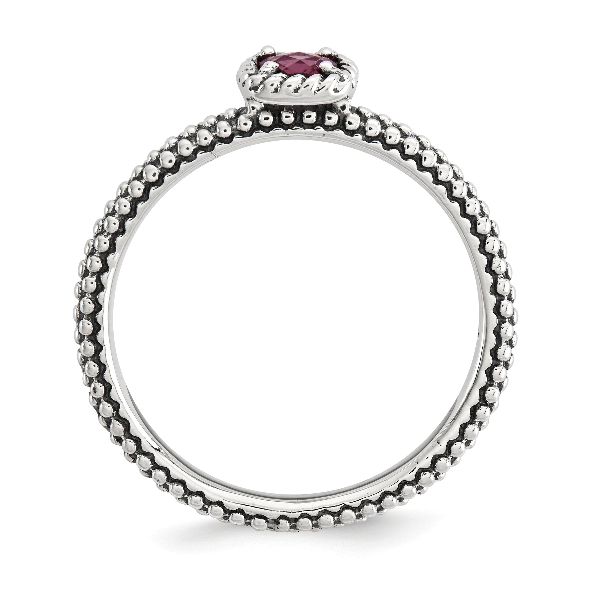Featured atop a 2. Mm antiqued sterling silver band finished with milgrain detailing is a 4mm checkerboard cut pink tourmaline prong set in a 6mm square rope mounting. Wear it alone or featured in a collection. The color range varies on natural gemstones so please allow for slight variations in shades. Guaranteed to fit together perfectly with all of the mix and match Stackable Expressions rings.