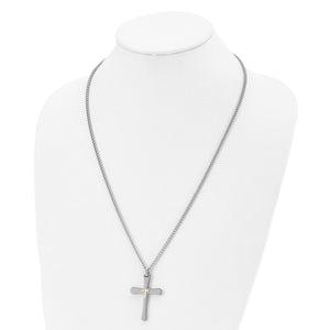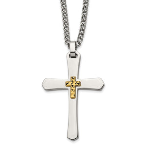 Stainless Steel & 14k Yellow Gold Accent D/C Cross Necklace, 24 Inch - Black Bow Jewelry Company