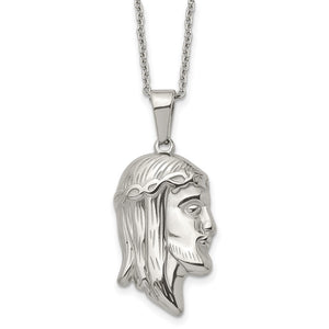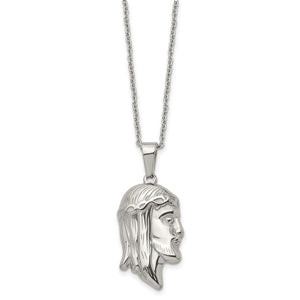 Stainless Steel Polished Jesus Profile Necklace, 22 Inch
